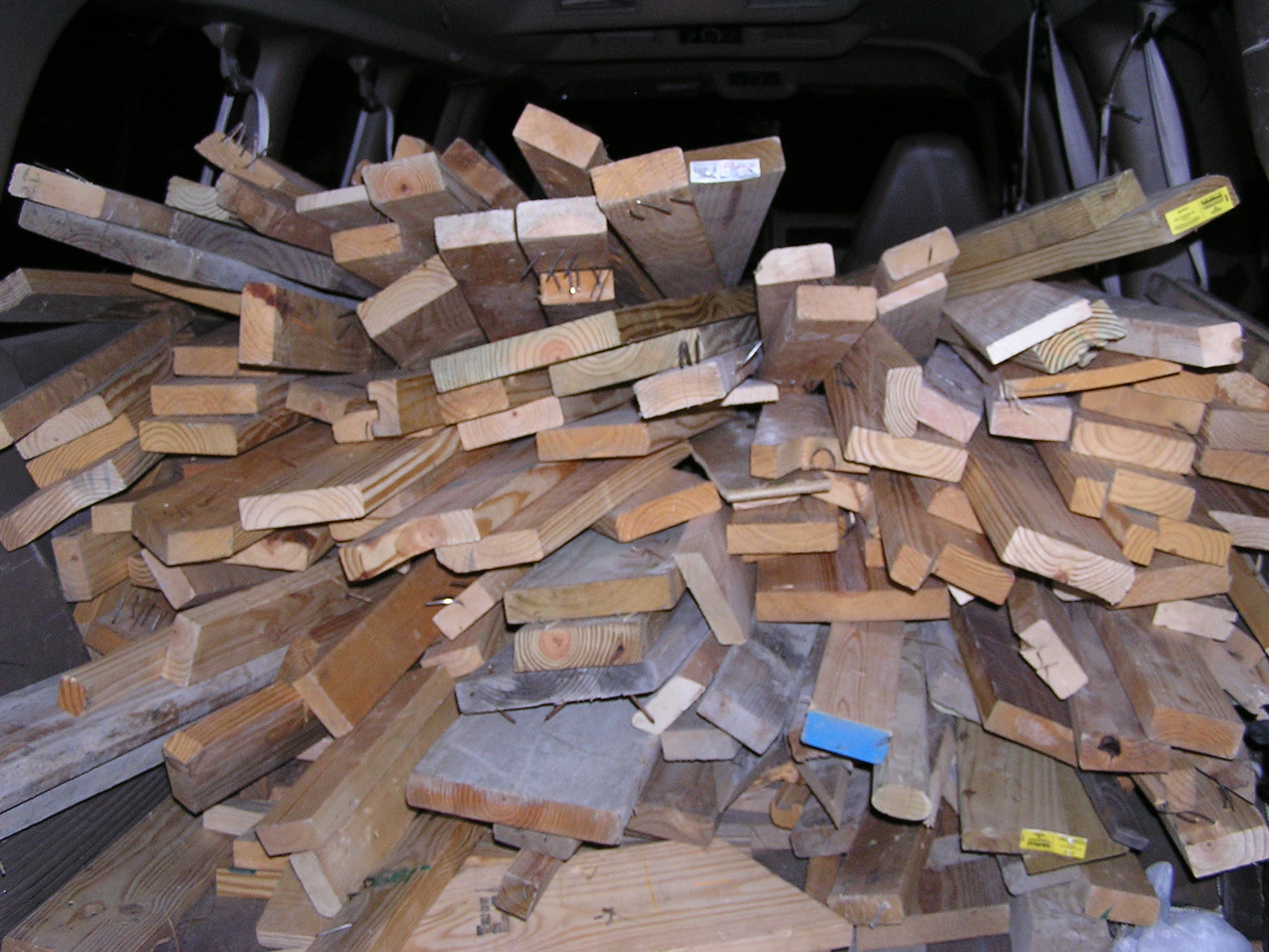 We were able to come away with two trucks full of lumber today and we are starting to accumulate a sizable pile of useable wood for the project, even though many require more nails to be pulled. Time to fetch another 3 gallon bucket. We found out today that we need 1457 boards in total (varying lengths and cuts). This means Ben and myself will be living in dumpsters for the next week.