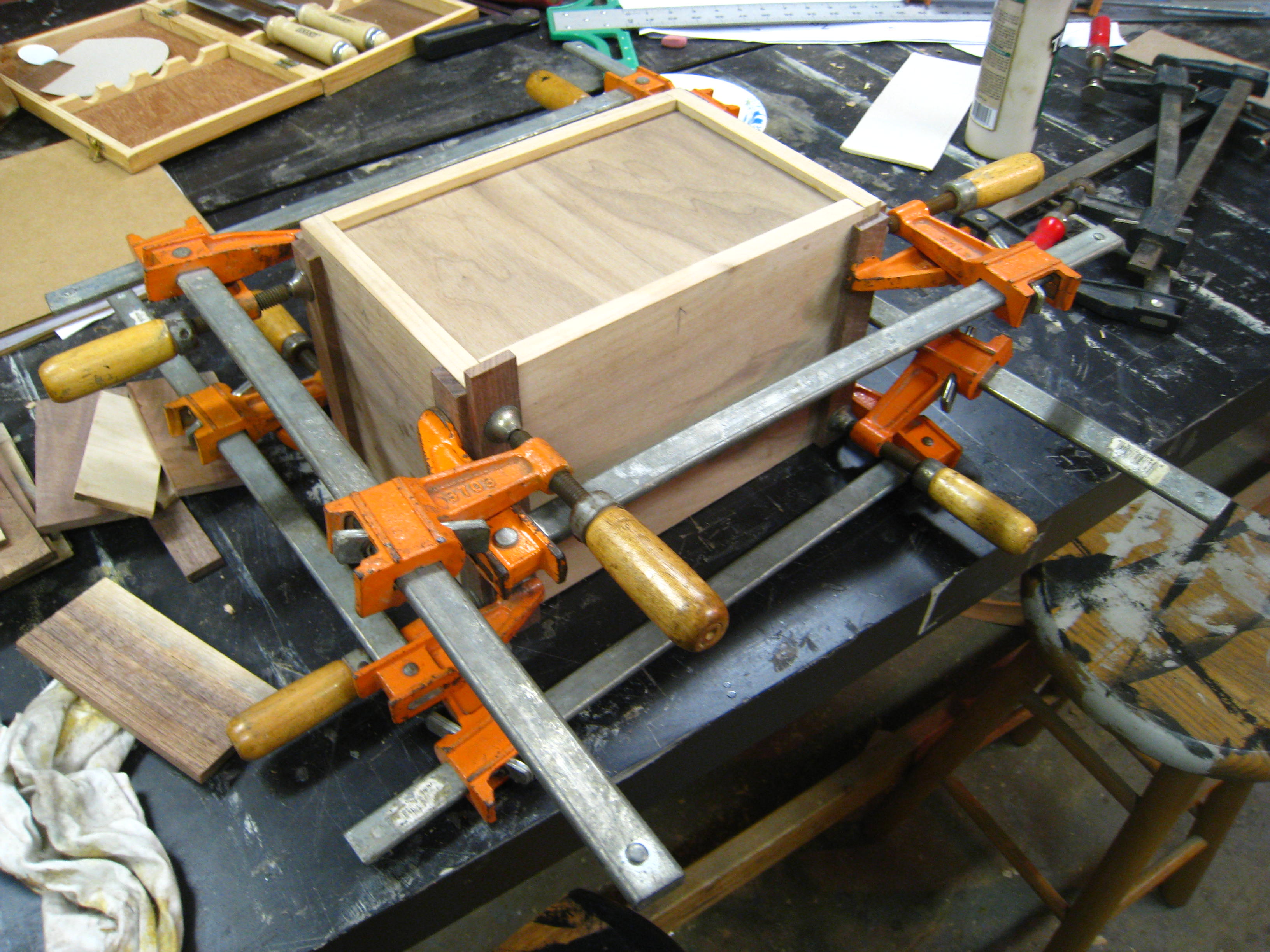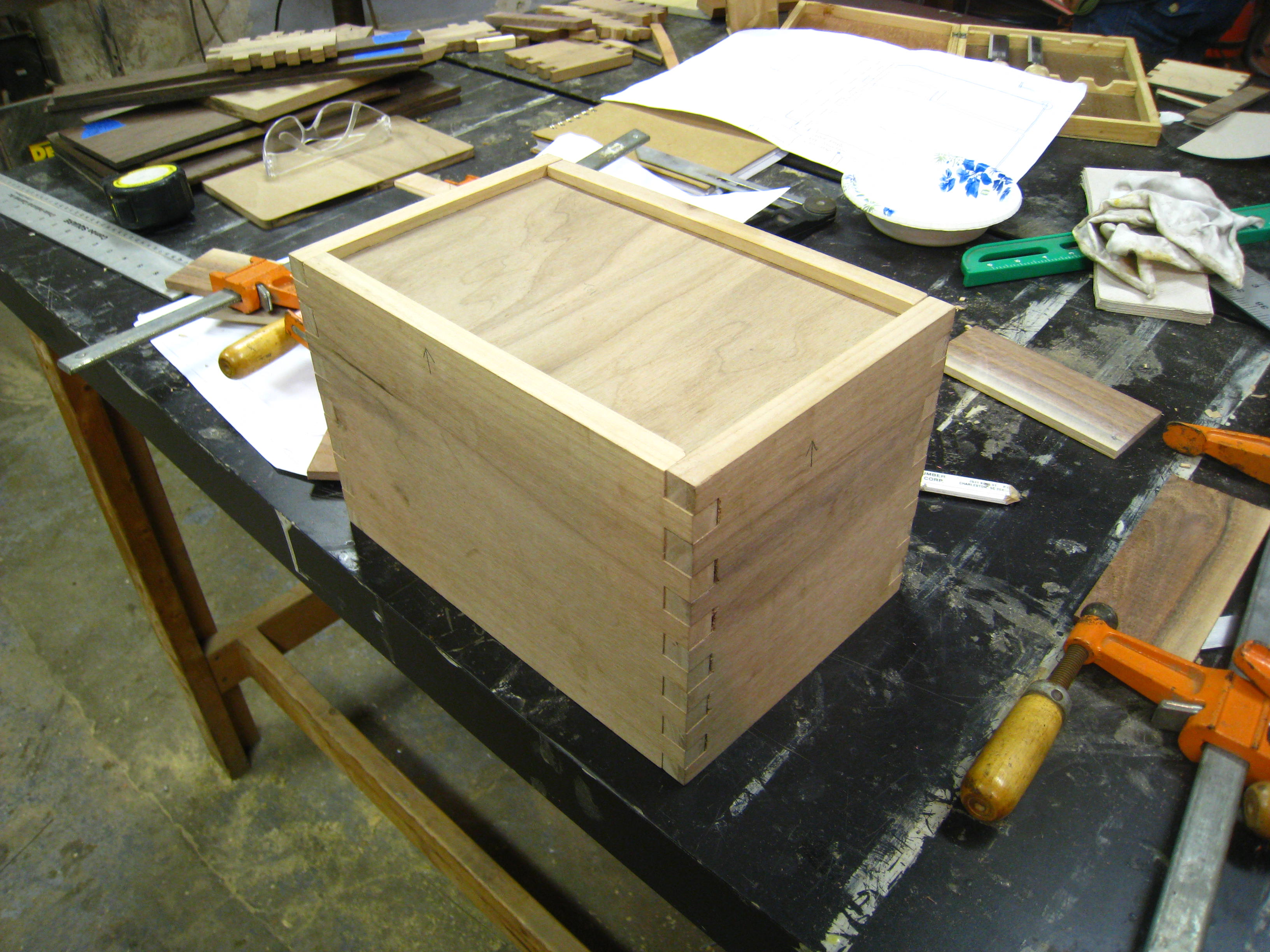 Below are some progress photographs of my ITC box project. The exterior is made of walnut and is designed to be a jewelry box that I am making custom trays and storage areas to fit my favorite pieces. The lid of the box also doubles as a tray that I can toss items into when in a rush and will have a dark wenge wood reveal. When complete, I will be sure to post photos of the final product next Tuesday after our class review!