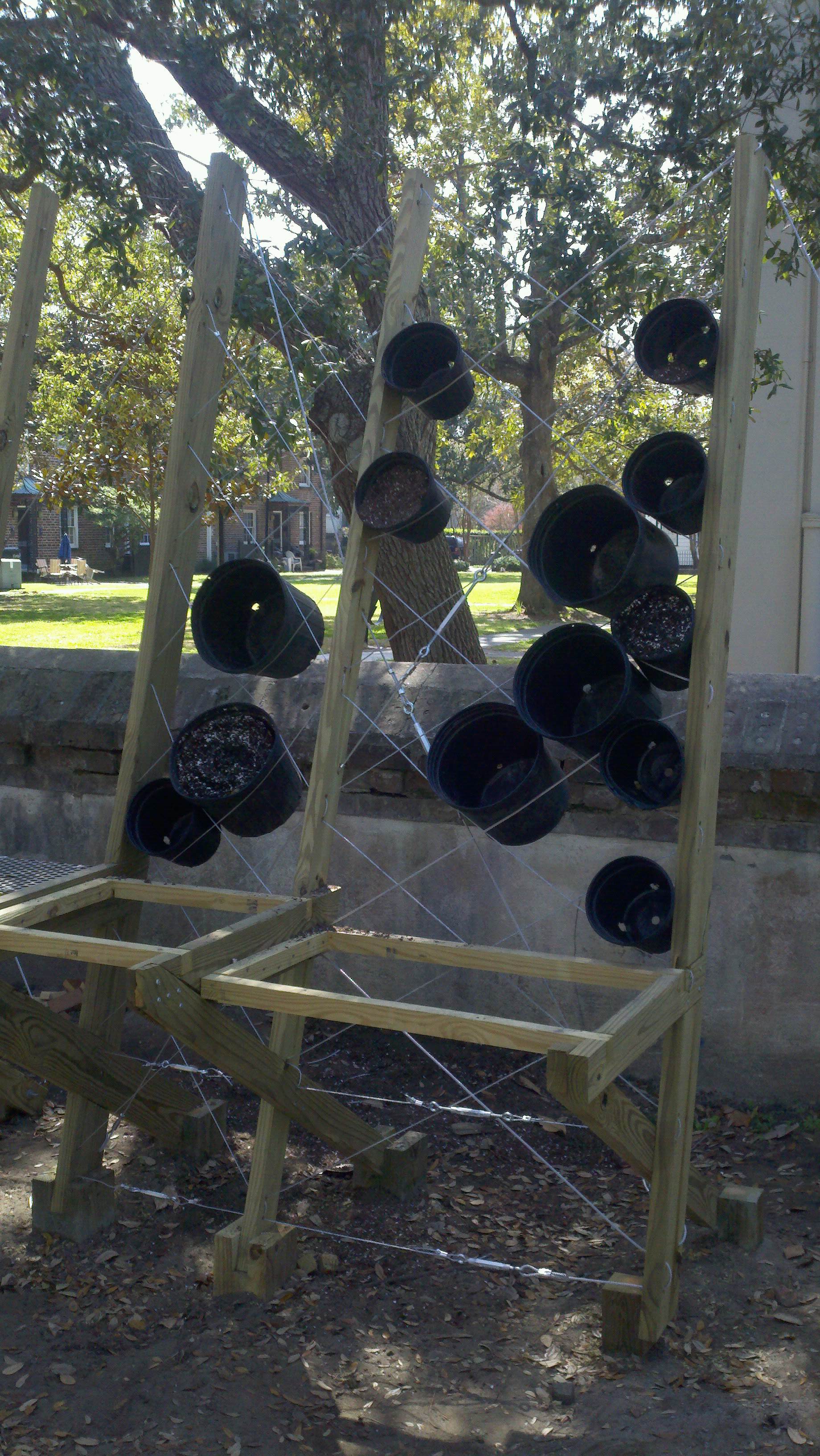 Its going to be a balancing act. We have to get the cables tight enough to support the pots, but also loose enough to form around the pots. This past class we took out all the old cable and went and purchased the cable we are going to be using (3/32 and 1/8 inch). Using this new system will also reduce the amount of hardware we will need to have, which if you have ever had to buy hardware, you know how expensive it is. Aside from helping with the cable system, I have also been in charge of the budget which seems to rise and fall with each class. But as of right now, we are in good shape to complete the wall with the money we have, its just a matter of time and effort.
