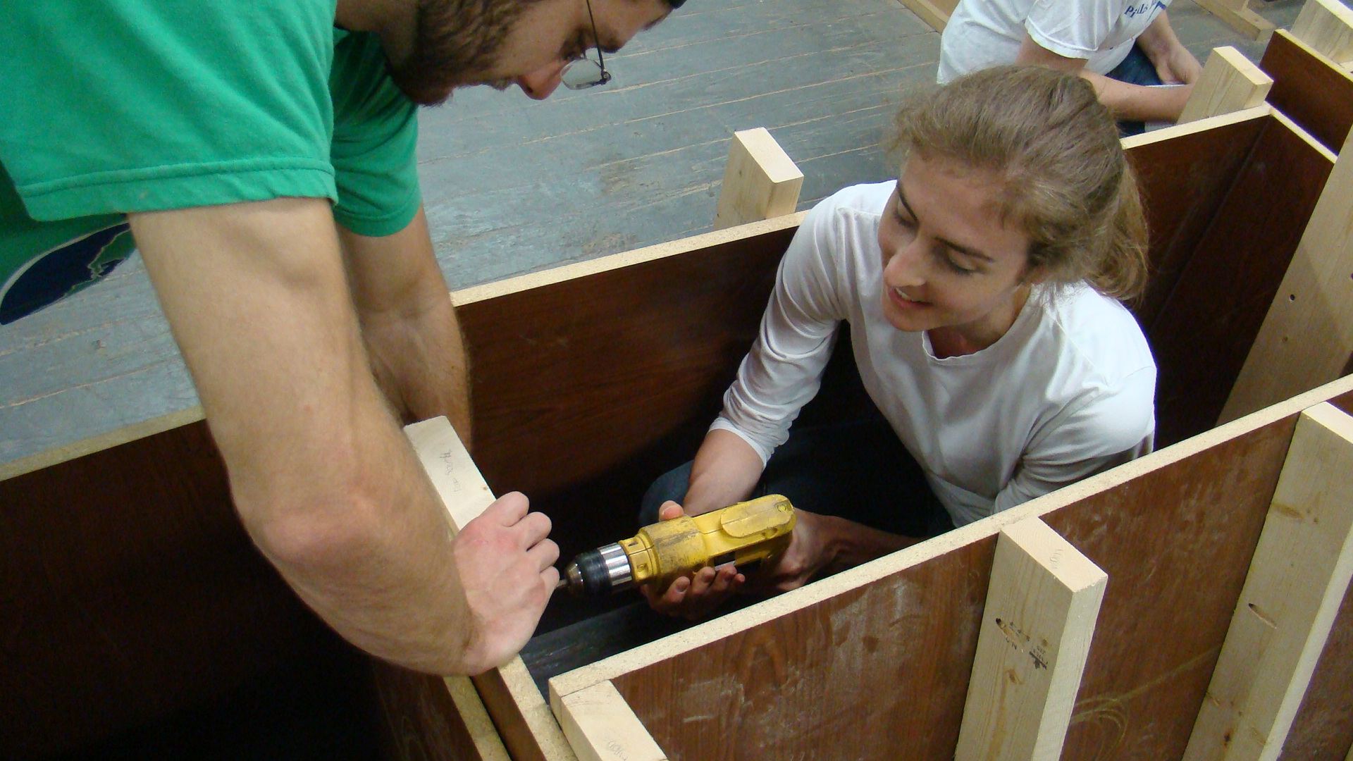A lot of work got done today, especially with the help of a few brave souls from the other Studio U (thanks guys and gals). With very important guests coming to view our full scale mock up Monday, we’re definitely picking up the pace with such a deadline on our heels – I’d say we shoveled twice as much concrete today as we managed to a few days ago pouring our footer. There is no feeling like hard manual labor to polish off a nice day.