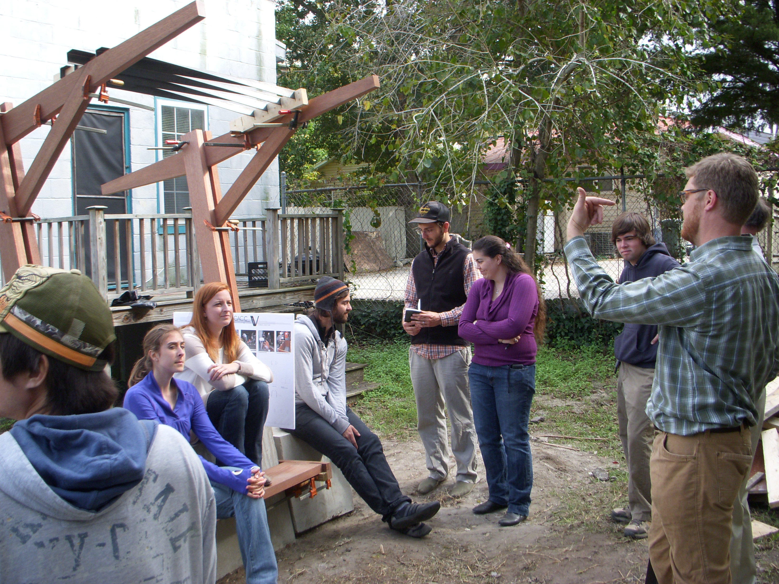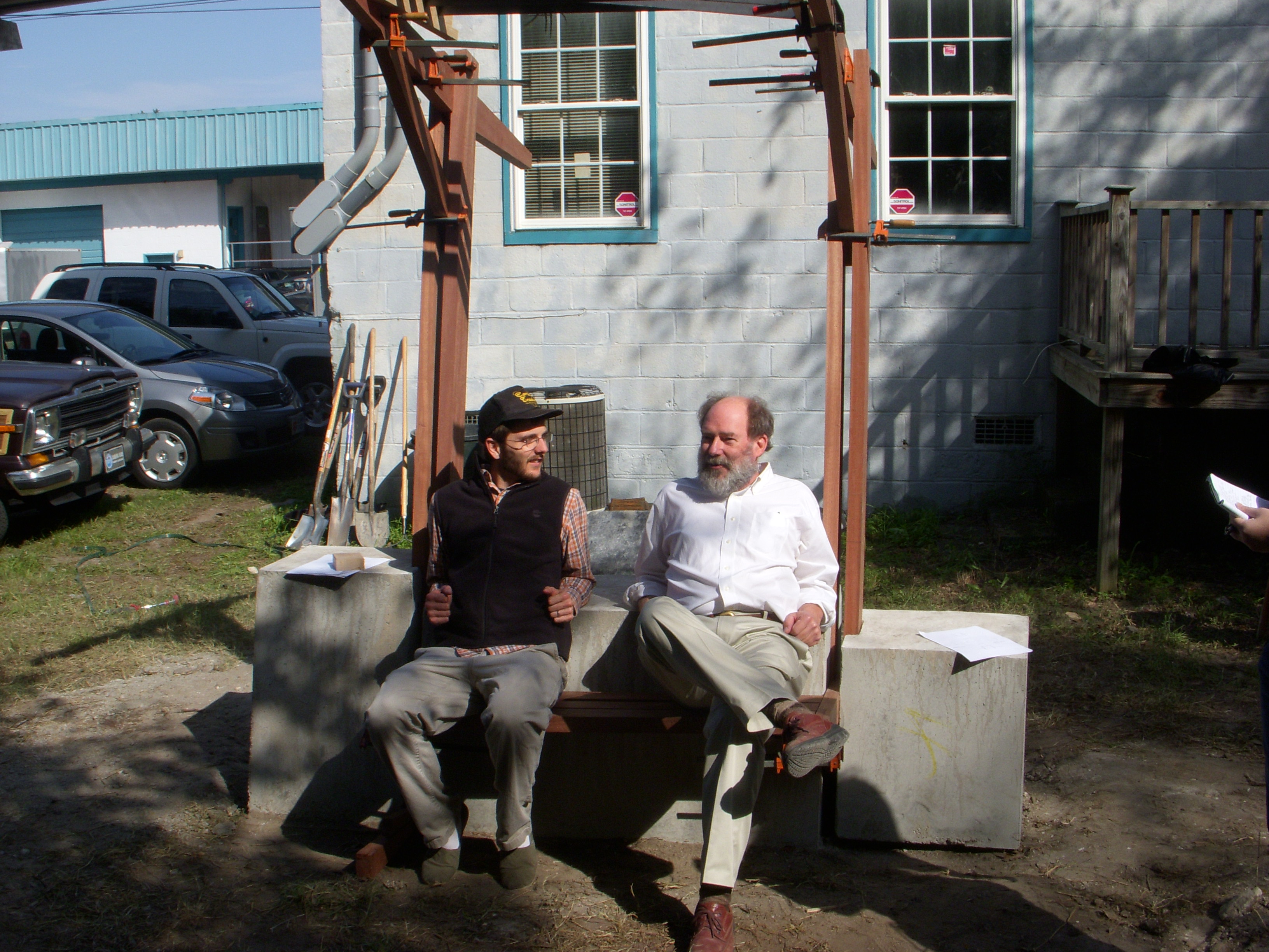 Among the guests were John Moore, a structural engineer who has aided us in making our structure safe and sound, Dustin Clemens, a landscape architect from the Charleston Dept. of Parks who has overseen our project from the beginning, and Jim Martin, the director of the Charleston Parks Conservancy who has also guided our design from the beginning. Along with a few others, our “Big 3,” as I like to call them, pointed out some of their concerns and shared some ideas in how to straighten some of the kinks we found in the mini-construction phase of our mock-up.