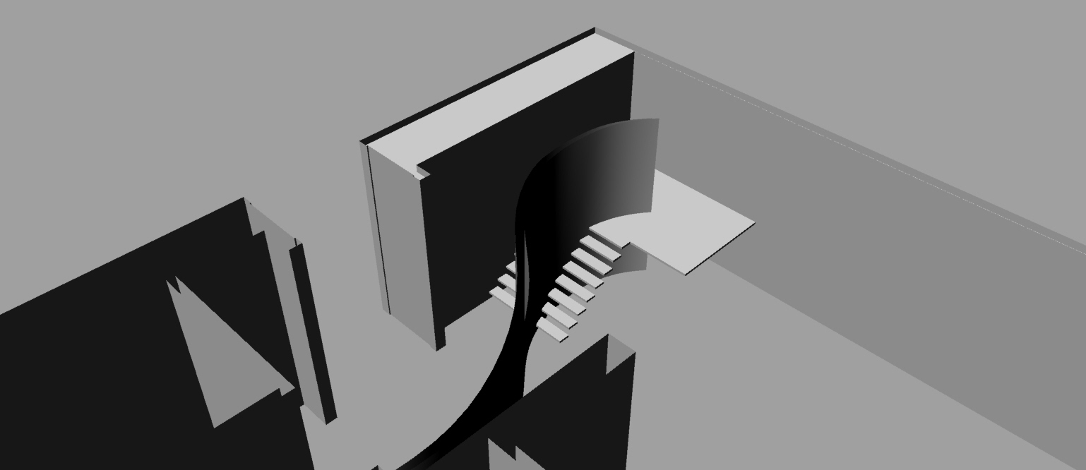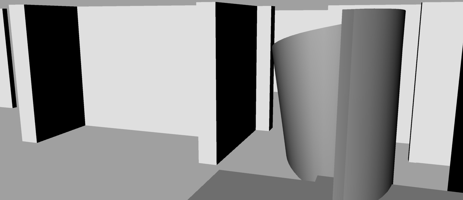 Our group has been challenged with further developing LeRone’s original design concept “The Wall”. Our team includes LeRone, Linnea, Adam, and of course, myself. Although it may be quite simple, the wall cuts across the entrace into the smaller gallery, where Motoi’s paintings and drawings will be, to help circulate people first to see his works and then back around the wall to see the salt installation has a sort of finale. In order to give people the best experience possible we have been looking at this wall from every angle possible in order to reveal things in a manner that will allow visitors to appreciate the work of Motoi. By curving and bending “The Wall” we are able to create suspense, hide other visitors viewing works at different locations, and offer different views of the artists work. Currently our group has been creating a number of models of different variations of “The Wall” so that we can test it to make sure we get it just right.