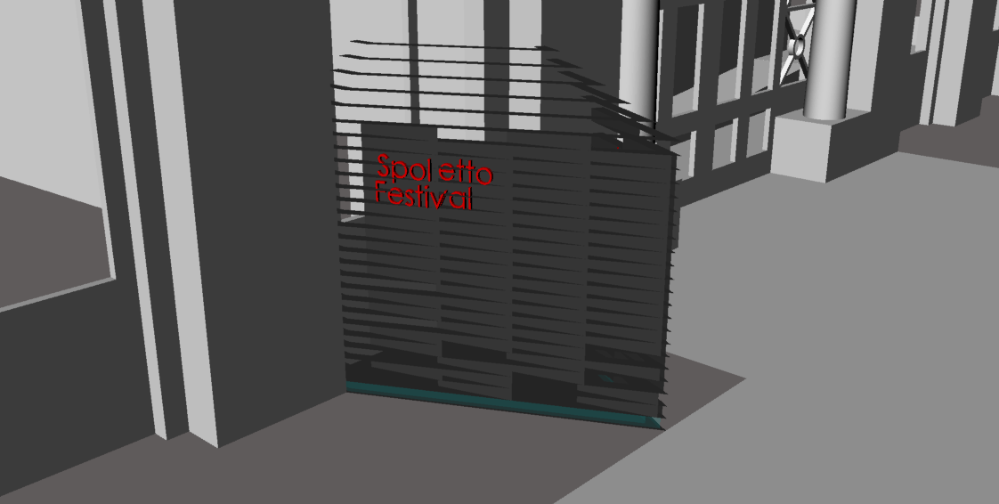 This weekend we are starting our full-scale mock-ups of the various detailed elements that make up our viewing platform. As well, my group is working on the outdoor attraction. The goal for our design-build project is to allow the average Spoleto Festival attendee to see the artist’s installation from 3 key perspectives: above, standing height, and kneeling height. The view from the Calhoun Street window allows you to get a kneeling height view without getting on your knees. This is possible because the gallery floor is 4′ or so above street level and it provides a perfect kneeling height view while standing outside. Today we have finally narrowed our ideas down a little and will begin in the direction of the design shown below. Creating a glare-free space that invites pedestrians to take a look at Motoi’s work through the window is ideal. Incorporating signage is a must as well. Take a look at the latest iteration!