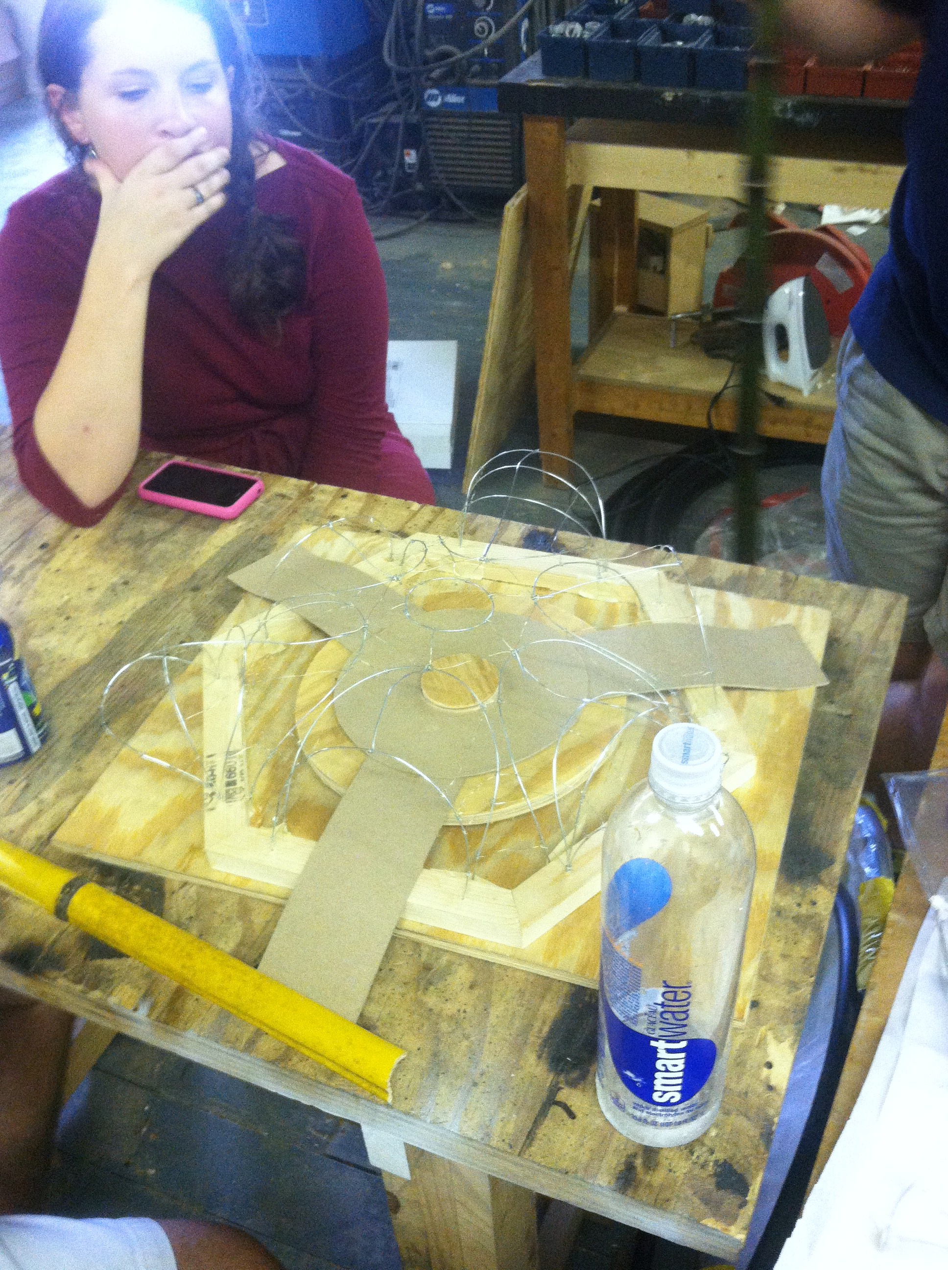 In the attempt to further our studio design we headed to the shop today to try and bang out some different ideas. With the model that was built over the weekend we started to form new ideas of what the structure could be. This model proved to be a great tool that we could use to shape new forms and physically see a three dimensional object rather than just a sketch.