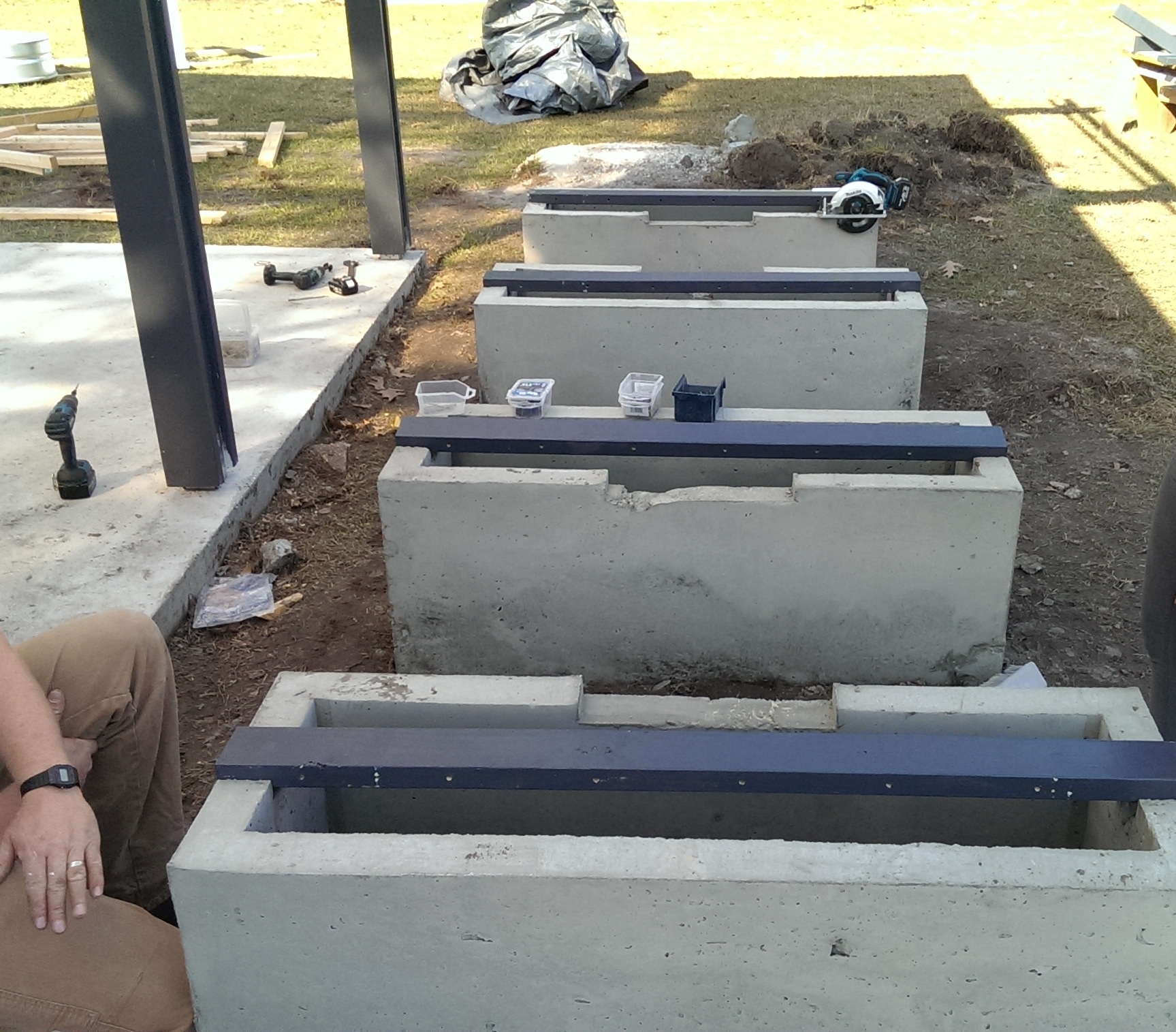 We had a lot of issues pouring concrete for the planter beds at first, because our formwork simply couldn’t hold up the weight of the concrete. We had to add a lot more bracing, but by this point we had already made a lot of the mistakes that we needed to make regarding setting the formwork level so we managed to use the bracing to help us keep things square and level. Once again, being able to adapt to that situation in a more efficient manner then before is just due to being able to constantly learn from past attempts.