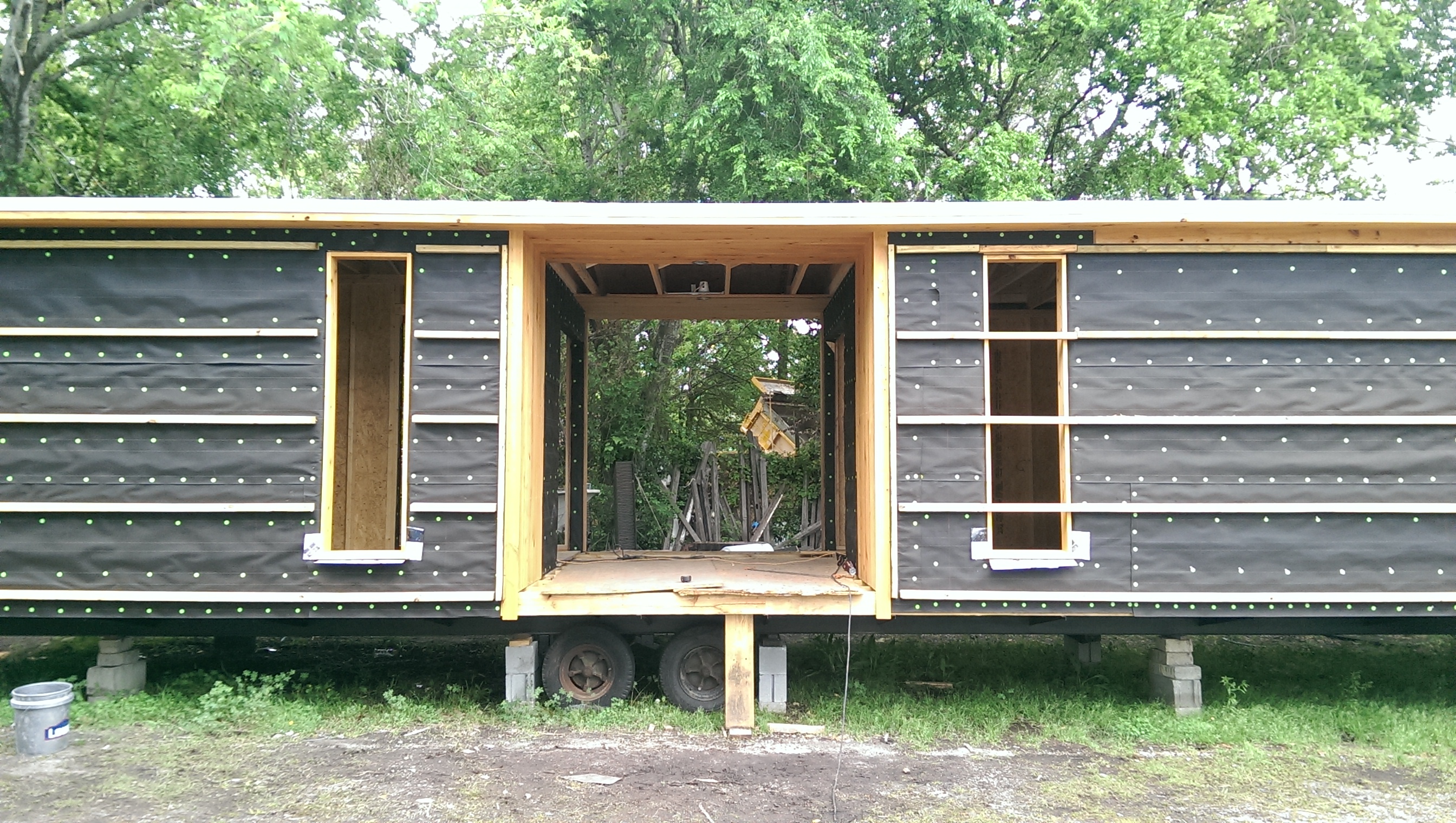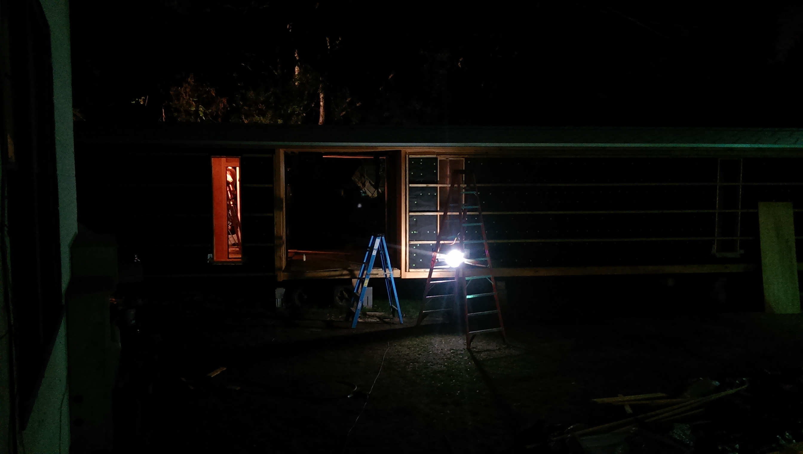 We plan to make significant strides when we show up to work Monday. The roof will finally be dry enough for us to put on, electricians will be busy installing our wiring and outlets, and the entire front façade is prepped for exterior sheathing. As the week gets shorter, the days get longer, but every bit of time is worth it to have this project in the best state possible for Friday.