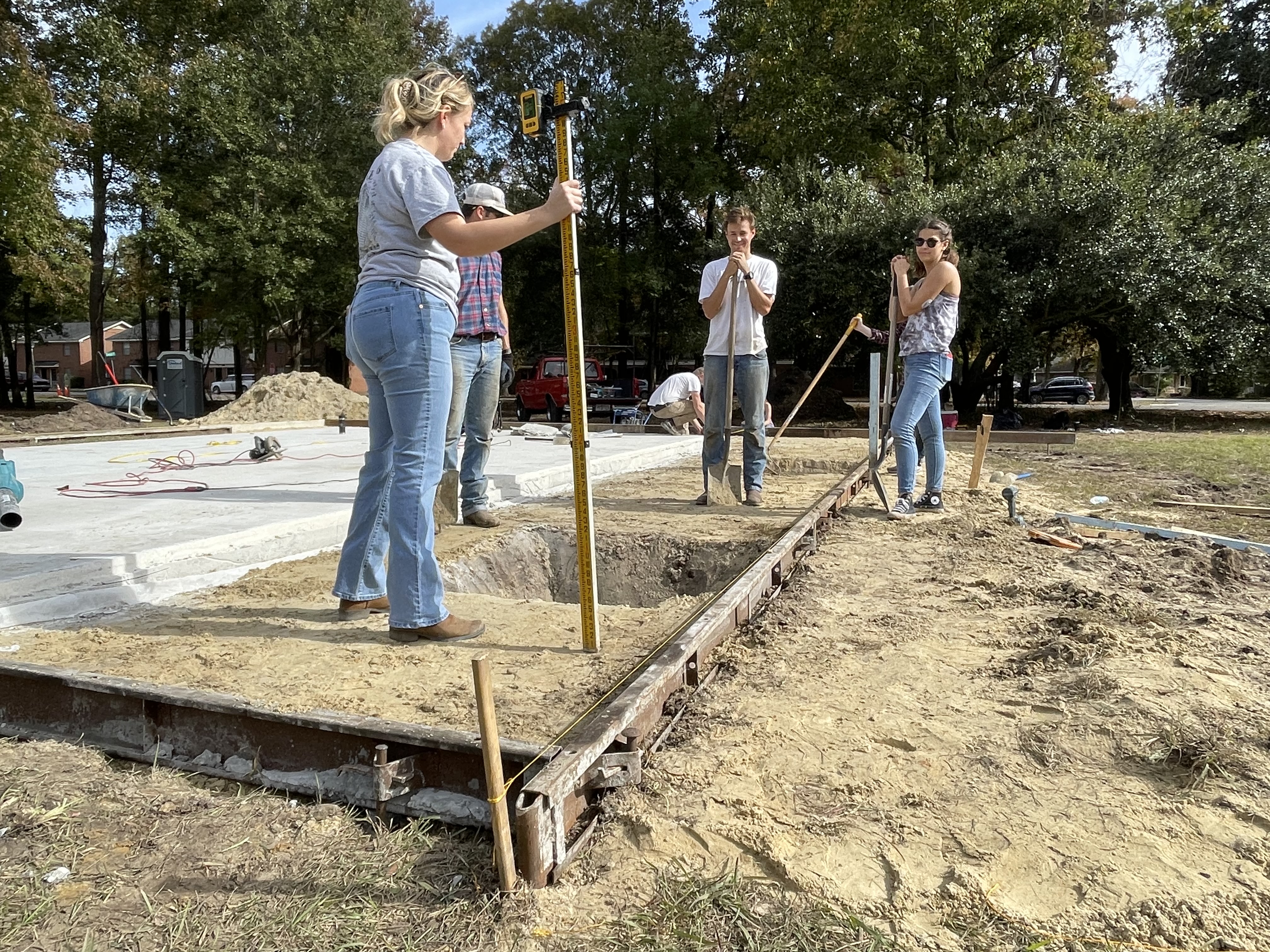 Over the last 2 days, the students have been working extremely hard to prepare for the final concrete pour for today! Holes were dug, areas were leveled, framework was done, and rebars were placed. There was a lot to do so everyone definitely had to pull their weight. We were all very tired by the end of yesterday, but since we had many people do different tings at the same time, we were able to finish this on time. But even after all that, we were still all able to smile through it as we joke around with each other and as we get excited to being 1 step closer to being able to see our finished product!