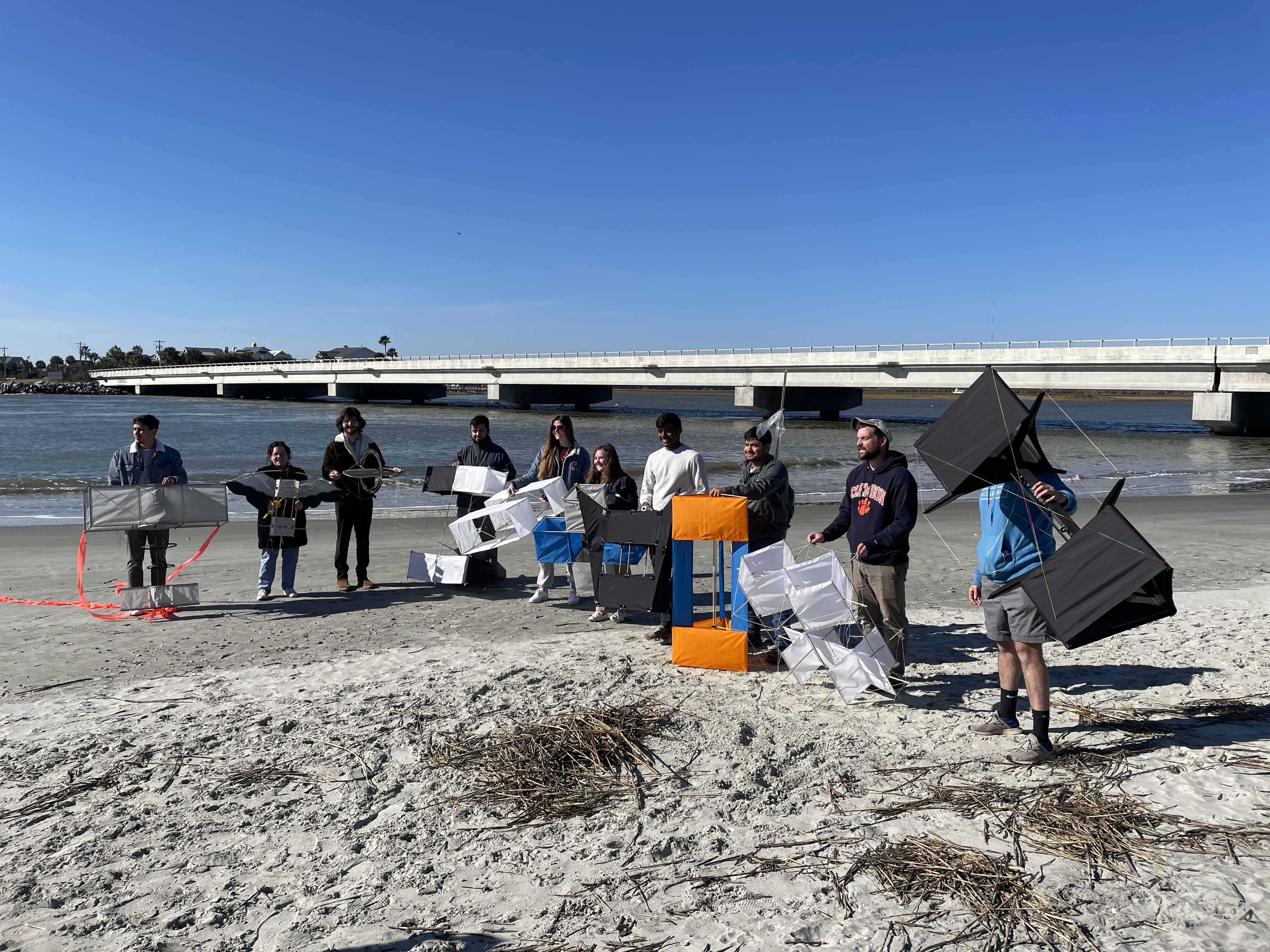 After a long and productive semester, we present the fruits of our labor. The nice thing about being in the Charleston campus is that we have a more intimate setting, and we all are able to see each other’s work. Yesterday was full of exciting activities. First ITC went out to the Isle of Palms beach inlet to test out their kites. That was really exciting. the skies were clear, and the sun was shining, and the kites were flying!