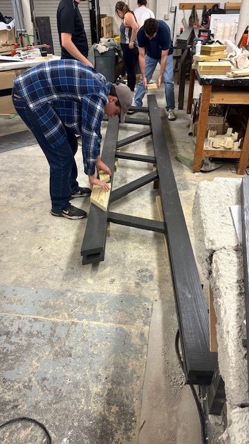 As we roll into this week we officially have 3 weeks remaining in the semester! This weekend we continued to make substantial progress on the build of our Plymouth Park design project. The cross bracing pieces have all been assembled and painted. On Friday we worked on creating a large template to help align the pieces of our complicated truss and ensure everything is lining up as designed. This weekend, all of the pieces were cut, primed, painted, and we assembled the first few trusses! This design forced us to work with many angles, requiring us to think carefully about fabrication and assembly. I am really proud of the team and how we worked together to make our complicated truss system come to life! I look forward to seeing it all go out to site hopefully later this week.