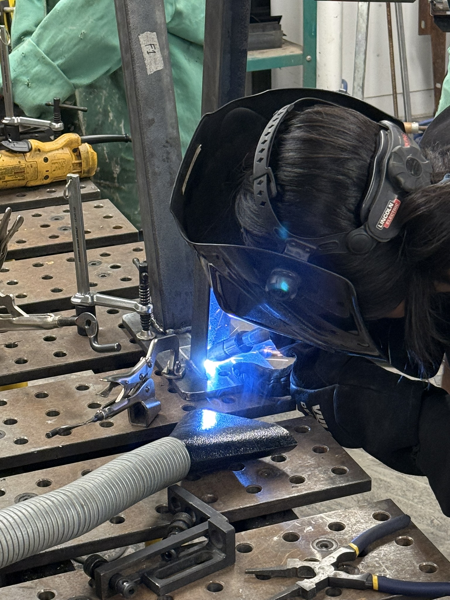 As the afternoon team rolled in, all the pieces were cut and mostly grinded, so a lot of the afternoon consisted of welding, that was until we realized that the member connecting the table legs was welded on 90 degrees in the wrong direction.